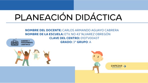NOMBRE DEL DOCENTE: CARLOS ARMANDO AGUAYO CABRERA NOMBRE DE LA ESCUELA: ETV. NO 43 ''ALVAREZ OBREGÓN CLAVE DEL CENTRO: 01DTV0043T GRADO: 3° GRUPO: A