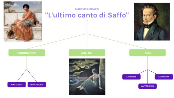 - Il suicidio di Saffo è presentato da Leopardi come un gesto eroico. La giovane donna decide di porre fine alla sua vita a causa dell’infelicità provocata dalla natura e dal fato crudele.