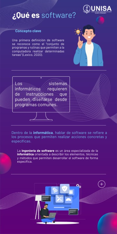 Concepto claveUn software es entonces una serie de instrucciones de carácter lógico que es seguido por una computadora para poder realizar funciones específicas y satisfacer una necesidad específica.