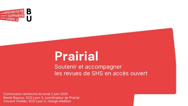 Commission recherche du lundi 2 juin 2025 Basile Bayoux, SCD Lyon 3, coordinateur de Prairial Vincent Chollier, SCD Lyon 2, chargé d’édition