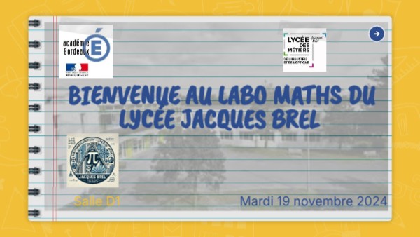 - Un référent principal : M.Sicaud, enseignant de mathématiques Lycée des Métiers Jacques Brel : Geoffrey.sicaud@ac-bordeaux.fr IMP suivi Laboratoire : Lycée des Métiers Jacques Brel. - Un annuaire - Un espace tribu - Un lieu 2024-2025 : salle D1 (aménagement en continu avec écoute de l’ensemble des membres du Laboratoire de mathématiques inter-degré : Notre Ecole Faisons - La Ensemble et La Région – équipements annuels) - des structures et des partenaires et des appuis : le Comité Local Entreprise, des temps forts, Cité des Sciences, l’Université de Bordeaux. - des temps forts communs aux établissements 1er degré, second degré, post-bac : Semaine de l’Industrie, Code Week, Semaine des Mathématiques dont le rallye mathématiques, inter-degrés Mathématiques et magie, au LDM Jacques Brel, semaine du cerveau, Journée de la Femme, Cafés des Parents – NEFLE et Cité Educative… Attention : nécessaires programmation et travail sur les contenus en amont (attention 5 semaines avant pour les FIL) : objet du travail des équipes enseignantes ce mardi 19/11 13h00-16h00