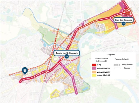 Vue sur le 209 route de Schirmeck et le 2 rue de Dachstein, points noirs du bruit dans le PPBE de 2019.