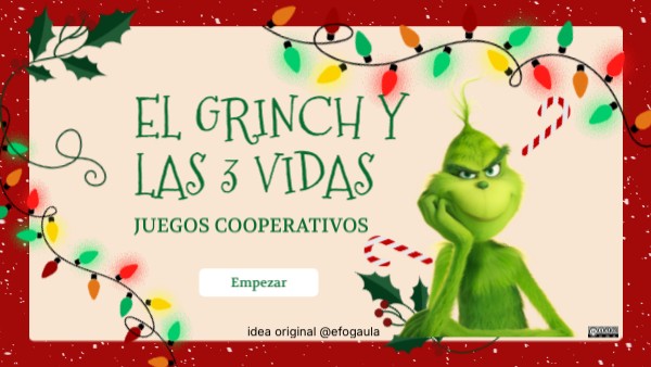 ¡Hola soy el GRINCH, Bienvenidos a mi juego! Me han dicho que tienes 3 vidas, pero no por mucho tiempo. Si no superas mis retos en equipo, pronto todas serán mías. Corre, corre que te pillo, JA, JA, JA