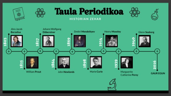 Taula periodikoaren azken aldaketa 2016an gertatu zen, IUPACek lau elementu berri ofizialki onartu zituenean: Nihonio (Nh), Moskovio (Mc), Tennessino (Ts) eta Oganeson (Og), horrela taularen zazpigarren aldia osatuz. Horrekin, taula 118. elementuraino iritsi zen. Taula periodikoak gaur egun arte, zientzia hobeto ulertzea, elementu eta materialen aurkikuntza/erabilera... etab. ahalbidetu digu. Taula periodikoari esker, adibidez medikuntzan, erradioa minbizia aurkitzeko erabiltzen da. Kobaltoa ere aipatzekoa da, teknologian ezinbestekoa dena. Ikusten denez, 200 urte ingurukoko historia du taula periodikoak, oso gutxi dena gizakiaren historiarekin konparatuz. Ziur aski, etorkizunean, elementu gehiago aurkituko dira, sistema aldatuko da... hau da, zientzia garatzen dago oraindik ere.