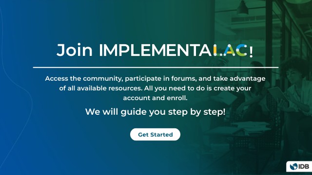 Access the ImplementaLAC community from your Dashboard on the INDES-BID platform.