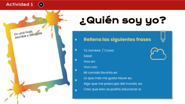 Tú nombre / Curso: Edad: Vivo en: Vivo con: Mi comida favorita es: Lo que más me gusta hacer es: Algo que me preocupa del mundo, es: Creo que esto se podría solucionar si: