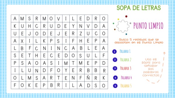 Busca 5 residuos que se depositen en el Punto Limpio