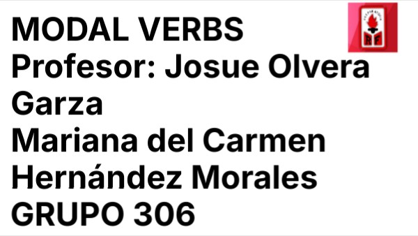 MODAL VERBS Profesor: Josue Olvera Garza Mariana del Carmen Hernández Morales GRUPO 306