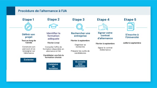 Février à mai Consulter l'offre de formation disponible en alternance à l'UACandidater une fois la formation choisie