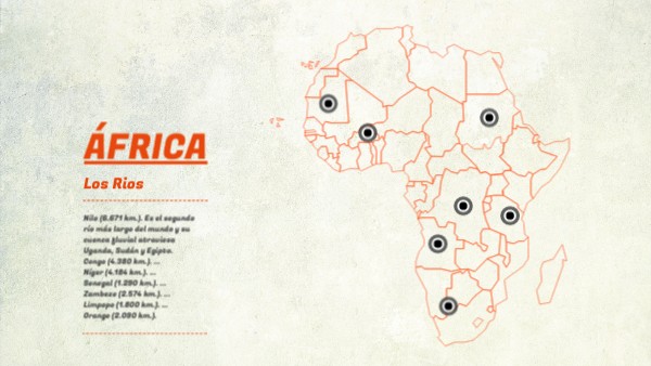 Nilo (6.671 km.). Es el segundo río más largo del mundo y su cuenca fluvial atraviesa Uganda, Sudán y Egipto.Congo (4.380 km.). ... Níger (4.184 km.). ... Senegal (1.290 km.). ... Zambeze (2.574 km.). ... Limpopo (1.800 km.). ... Orange (2.090 km.).