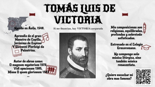 Autor de obras como:O magnum mysterium 1570, Vidi speciosam 1585, Missa O quam gloriosum 1583 ...