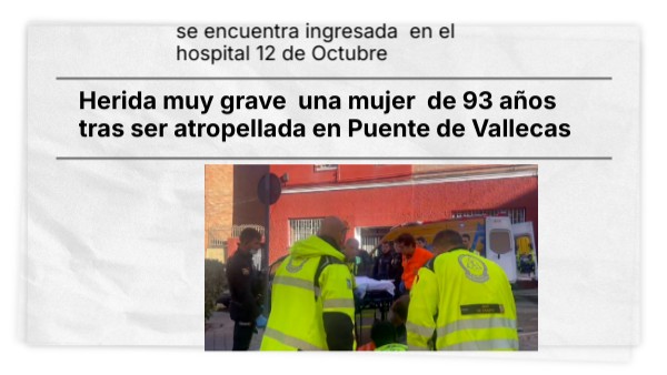 Herida muy grave una mujer de 93 años tras ser atropellada en Puente de Vallecas