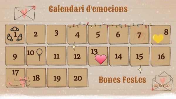 GEST AFECTUÓS Avui pot ser un dia en el qual pots aprofitar per a fer-li un gest afectuós a les persones que veges per l'escola, en els passadissos, patis,... Triem un gest (petó en l'aire, mà en el cor, abraçada en la distància...)
