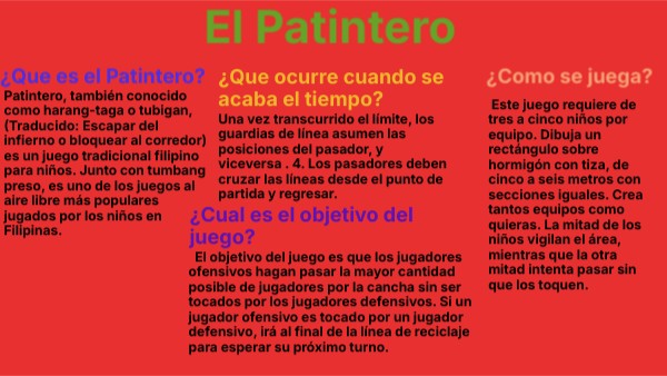 Patintero, también conocido como harang-taga o tubigan, (Traducido: Escapar del infierno o bloquear al corredor) es un juego tradicional filipino para niños. Junto con tumbang preso, es uno de los juegos al aire libre más populares jugados por los niños en Filipinas.