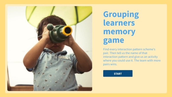 Find every interaction pattern scheme's pair. Then tell us the name of that interaction pattern and give us an activity where you could use it. The team with more pairs wins.