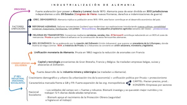 Fuerte aceleración (por poseer a Alsacia y Lorena) desde 1870. Alemania pasa de estar dividida en 300 jurisdicciones independientes a sólo 39 Estados (Congreso de Viena: nuevas fronteras, derechos e indemnizaciones de guerra)