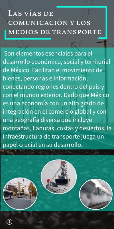 ● Las vías de comunicación permiten la integración de regiones rurales y menos desarrolladas al sistema económico nacional. La mejora de la conectividad puede impulsar el crecimiento económico y mejorar el acceso a servicios en regiones marginadas del país.