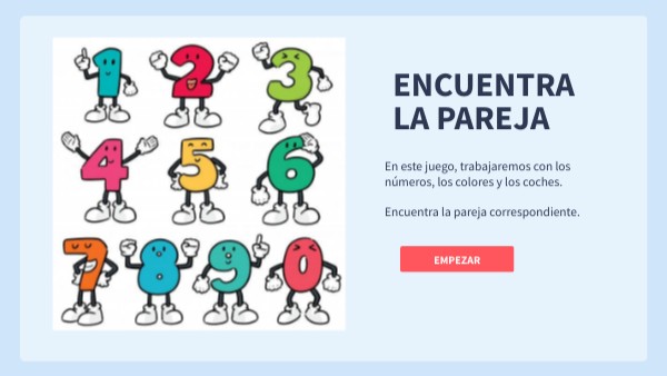 En este juego, trabajaremos con los números, los colores y los coches. Encuentra la pareja correspondiente.
