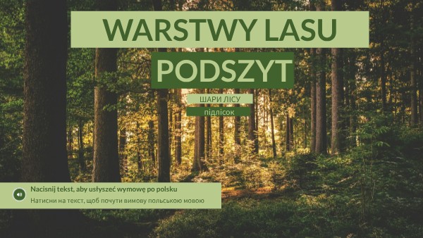 Poznaj warstwy lasu. Kliknij na tekst po lewej stronie. Досліди яруси лісу. Натисни на текст зліва.