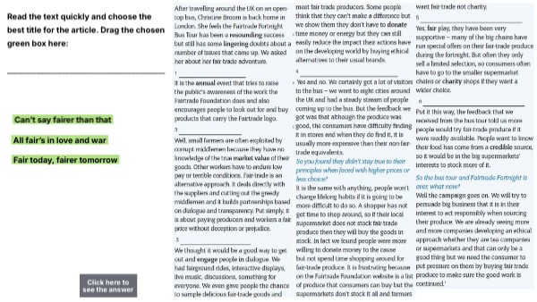 c It’s the only that really fits – the article is about how Fairtrade is trying to improve farmers’ conditions