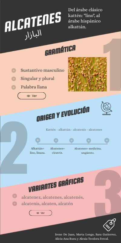 - Diccionario de la Real Academia Española: “del árabe hispánico alkattán y este del árabe clásico kattén (lino)” (RAE, consulta: 13/11/24).