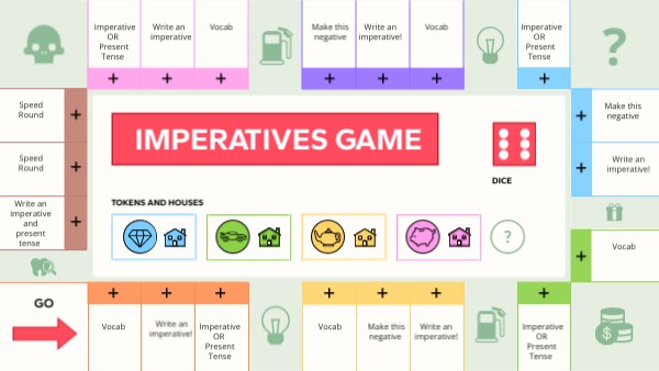 1 minute timer: Write as many imperatives as possible. Each correct = 150 pts