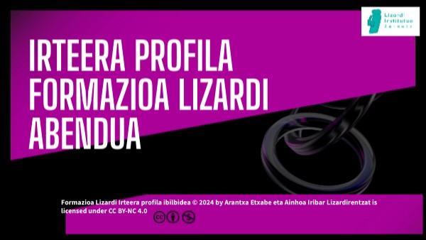 Formazioa Lizardi Irteera profila ibilbidea © 2024 by Arantxa Etxabe eta Ainhoa Iribar Lizardirentzat is licensed under CC BY-NC 4.0