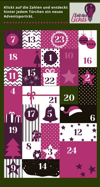 Klickt auf die Zahlen und entdeckt hinter jedem Türchen ein neues Adventsporträt.