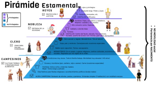 Hombres: Pajes, escuderos y caballeros. Mujeres: casadas y no casadas