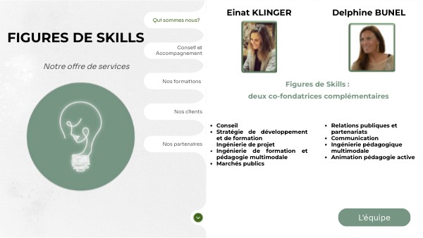 L'offre de services de Figures de Skills a été élaborée en tenant compte de la complémentarité des compétences de ses deux co-fondatrices.