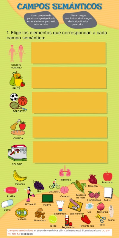 1. Elige los elementos que correspondan a cada campo semántico: