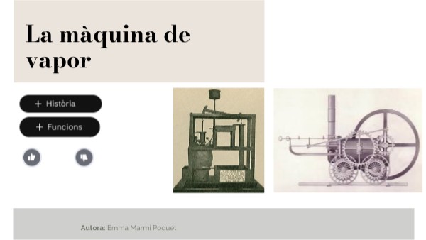 Parts de la màquina de vapor: · Caldera · Motor de vapor · Pistons · Distribuidor · Sistema de Biela i Manovella · Vàlvula d'entrada ·Cilindre