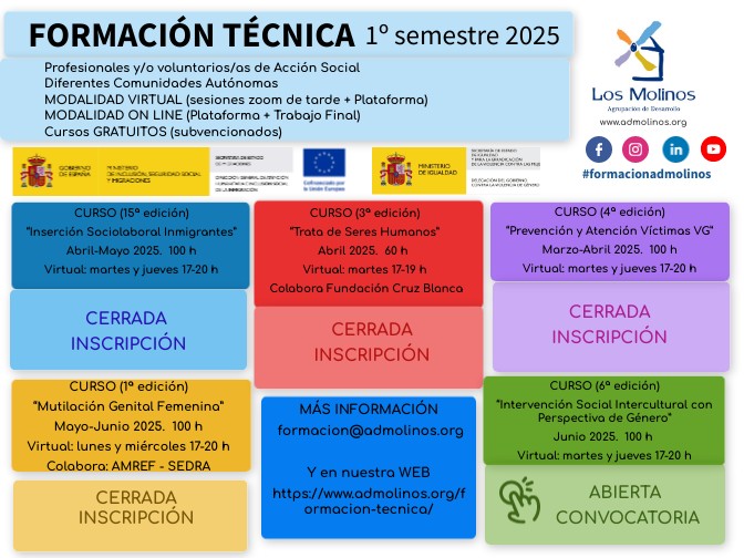 MÁS INFORMACIÓN formacion@admolinos.org Y en nuestra WEB https://www.admolinos.org/formacion-tecnica/