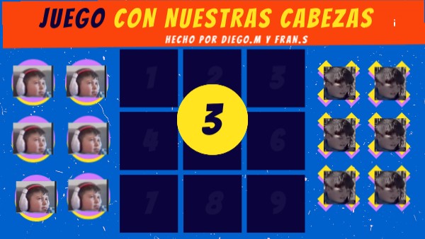 Se juega siempre entre 2 jugadores. Cada uno elige una forma (Moreno o Fran). En cada turno cada jugador coloca una de sus cabeza . El jugador que consigue colocar 3 cabezas seguidas en una línea horizontal, vertical o diagonal gana la partida. Una vez se llenan todos los espacios disponibles si nadie consigue ubicar 3 fichas seguidas la partida termina en empate.