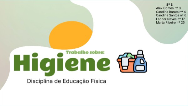 Este é o nosso trabalho proposto pela disciplina de Educação Física, onde o tema escolhido foi HIGIENE. Nas próximas páginas iremos desenvolver melhor este tema, que na atualidade acima de tudo é e foi sempre muito importante para a sociedade.Este é um trabalho interativo, tem botões e gifts, experimente-os!!