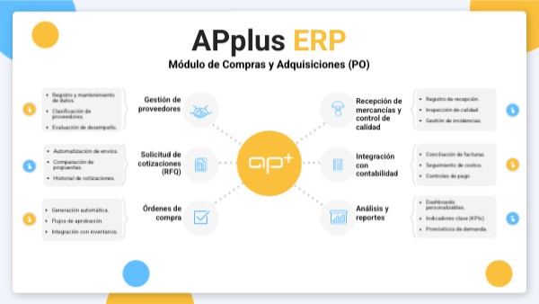 El módulo de compras en APplus-ERP centraliza y automatiza el proceso de adquisición de materiales, facilitando la selección de proveedores, control de costos y seguimiento de órdenes en tiempo real. Esto permite optimizar los tiempos de abastecimiento y asegurar una mejor gestión del presupuesto y la relación con proveedores estratégicos.