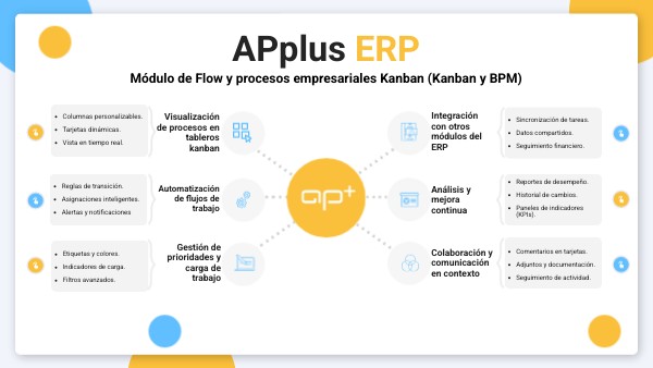 El módulo de Flow y Procesos Empresariales Kanban permite visualizar, organizar y optimizar flujos de trabajo en tiempo real mediante tableros personalizables. Esta funcionalidad es clave para mejorar la eficiencia operativa y la colaboración entre equipos, ya que permite gestionar procesos complejos de forma visual e intuitiva.