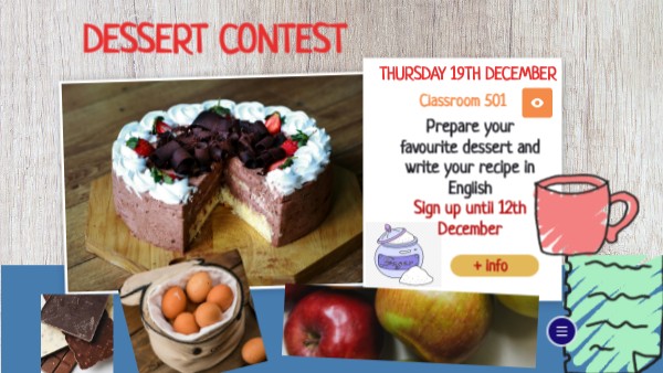 Prepare your favourite dessert and write your recipe in English Sign up until 12th December