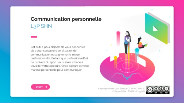 Cet outil a pour objectif de vous donner les clés pour convaincre en situation de communication et soigner votre image professionnelle. En tant que professionnel(le) de l'univers du sport, vous serez amené à travailler votre discours, votre posture et votre marque personnelle pour communiquer.