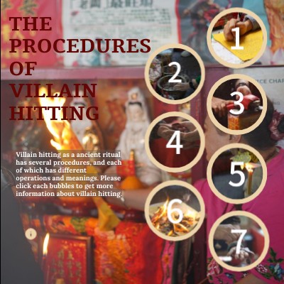 Villain hitting as a ancient ritual has several procedures, and each of which has different operations and meanings. Please click each bubbles to get more information about villain hitting.