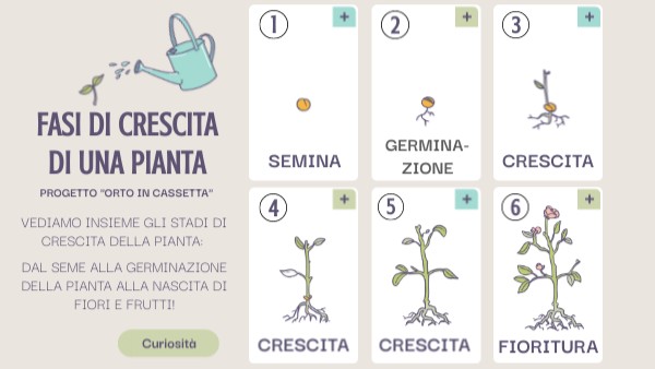 Aiuta la piantina a ritrovare l'ordine corretto DELLE FASI DI CRESCITA: abbina l'immagine alla corrispettiva definizione sullo stadio di crescita.