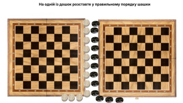 На одній із дошок розставте у правильному порядку шашки