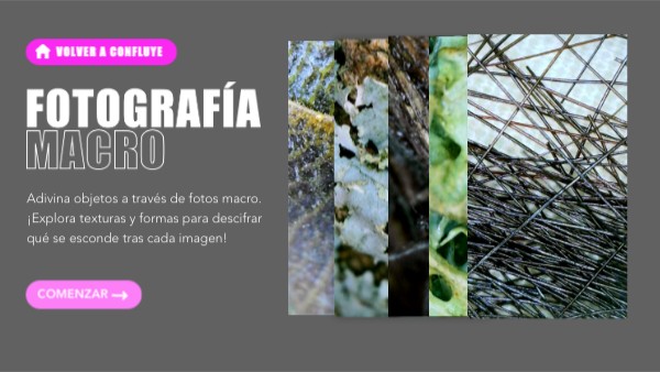 Adivina objetos a través de fotos macro. ¡Explora texturas y formas para descifrar qué se esconde tras cada imagen!