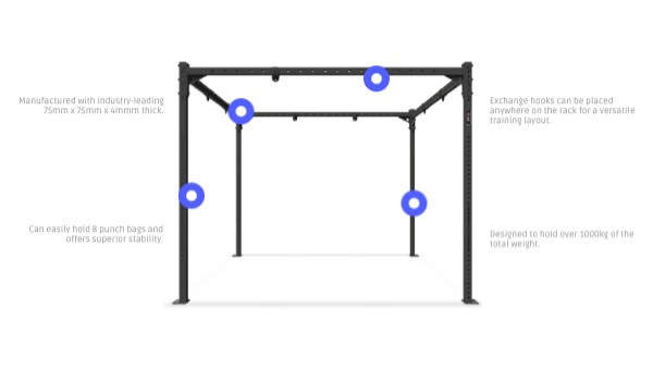 Can easily hold 8 punch bags and offers superior stability.