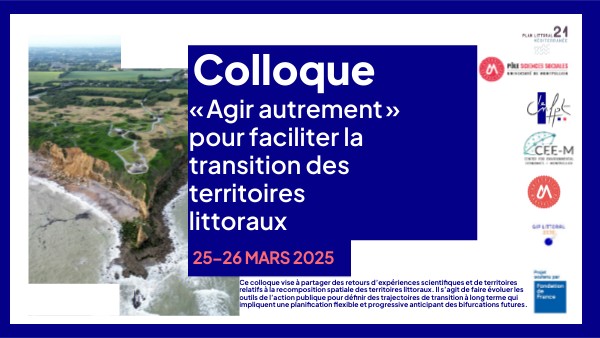 Ce colloque vise à partager des retours d’expériences scientifiques et de territoires relatifs à la recomposition spatiale des territoires littoraux. Il s’agit de faire évoluer les outils de l’action publique pour définir des trajectoires de transition à long terme qui impliquent une planification flexible et progressive anticipant des bifurcations futures.