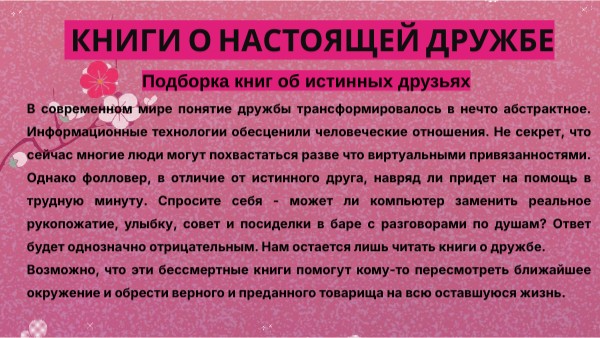 КНИГи О НАСТОЯЩЕЙ ДРУЖБЕ