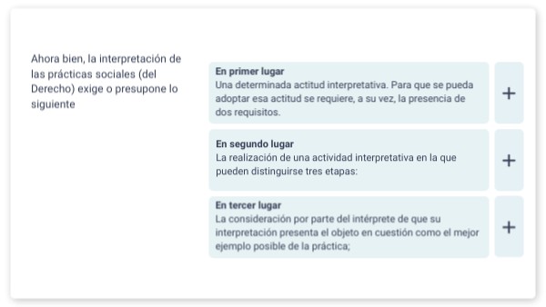Ahora bien, la interpretación de las prácticas sociales (del Derecho) exige o presupone lo siguiente
