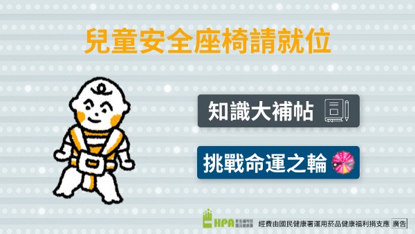 「無論車輛行駛距離遠近,4歲以下兒童乘車時,都需要坐在後座並使用安全座椅,確保兒童不會因為突然剎車或碰撞而受傷。 ※特別提醒:4-12歲兒童若使用安全帶會勒住頸部,也須使用安全座椅。」