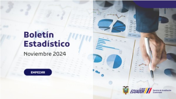 El Servicio de Acreditación Ecuatoriano (SAE), como entidad adscrita al Ministerio de Producción, Comercio Exterior, Inversiones y Pesca (MPCEIP), desempeña un papel crucial en el fortalecimiento de la Infraestructura de la Calidad del Ecuador, generando confianza y calidad en los servicios que ofrecen diversos organismos de evaluación de la conformidad. SAE como ente oficial de acreditación en el país, busca acreditar la competencia técnica de los organismos que operan en materia de evaluación de la conformidad como: laboratorios de ensayo, calibración, clínicos, organismos de certificación y de inspección. Este Boletín Estadístico, elaborado por la Dirección de Análisis de la Acreditación utiliza fuentes de información primarias provienentes directamente de las áreas técnicas del SAE y tiene como finalidad de proporcionar una visión clara y actualizada de la dinámica de acreditación en el país. Se destaca como una herramienta esencial que facilita la comprensión de cifras claves y tendencias relacionadas con la Acreditación actualizadas al mes de noviembre 2024. Atentamente, Dirección de Análisis de la Acreditación
