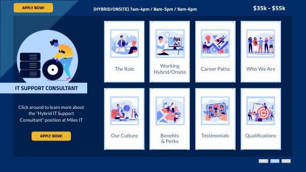 Click around to learn more about the "Hybrid IT Support Consultant" position at Miles IT